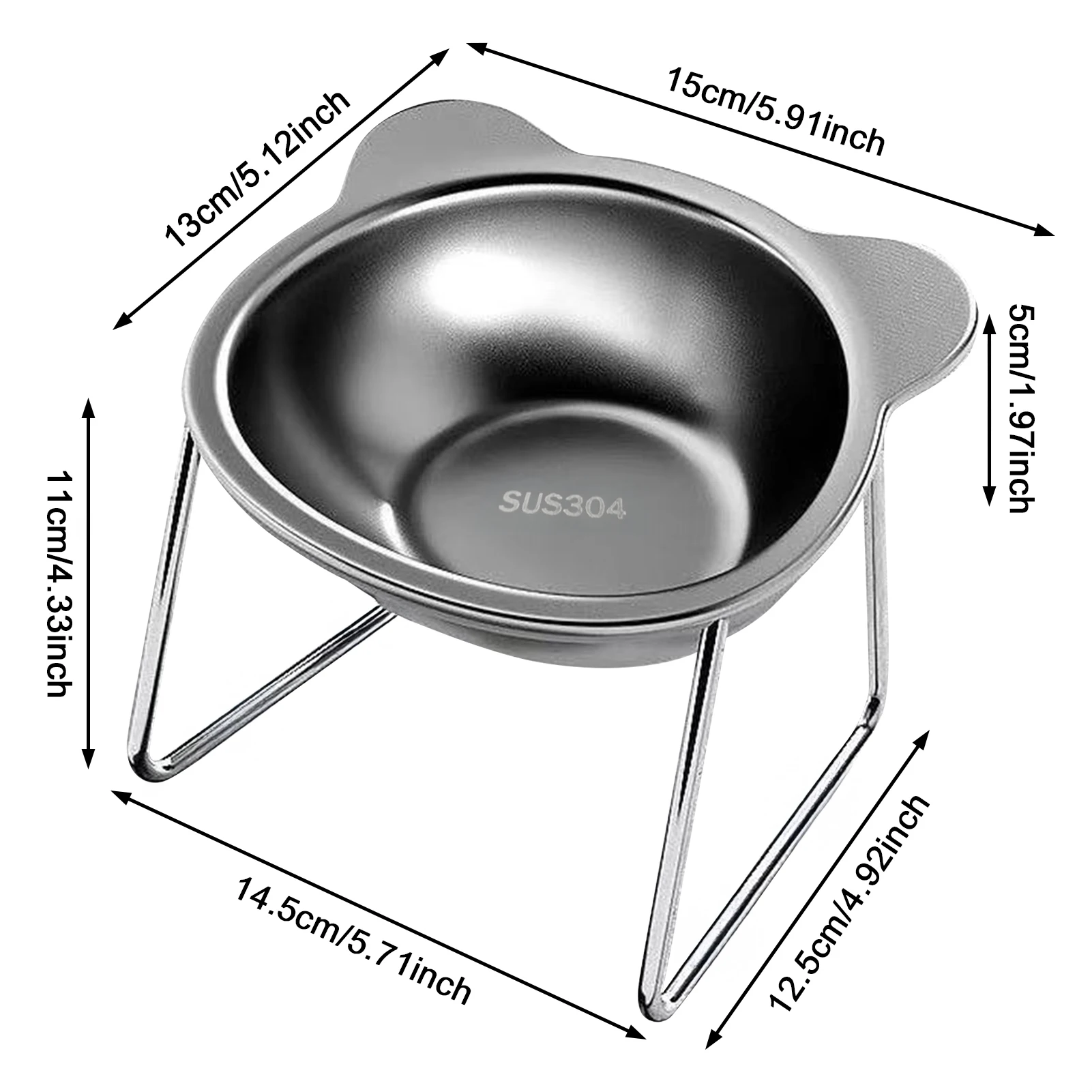 Premium Stainless Steel Construction: This cat bowl with stand is made of high-quality stainless steel, ensuring durability and easy cleaning, perfect for indoor cats and small dogs. The elevated design promotes better posture during meals.